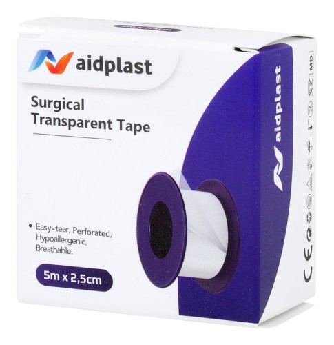 Aidplast Náplasť na cievke transparentná 5 m × 2,5 cm