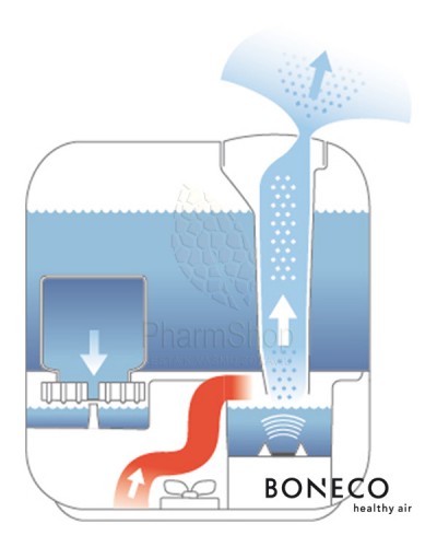 Nová ionizačná strieborná tyčinka A7017 (ISS) využíva antimikrobiálne účinky striebra a zabezpečuje optimálnu čistotu vody a likviduje baktérie, ktoré by mohli spôsobovať zápach vody. ISS pracuje aj pri vypnutom zvlhčovači. Ergonomický dizajn umožňuje ľahké čistenie. Ultrazvukový zvlhčovač je určený iba na prevádzku s neupravenou pitnou, nie príliš tvrdou vodou. Na čistenie a odstránenie minerálnych usadenín používajte raz mesačne prípravok Boneco CalcOff A7417.