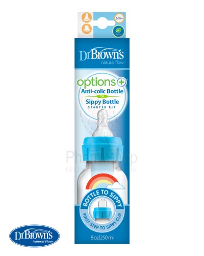 Dr. Brown’s Dojčenská Antikoliková fľaša Options+ 250ml 2v1 modrá s náustkom (SB8192-P3)