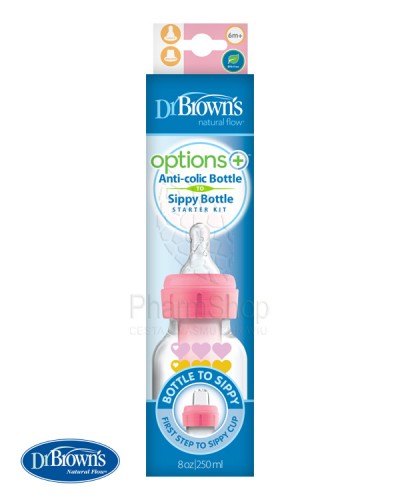 Dr. Brown’s Dojčenská Antikoliková fľaša Options+ 250ml 2v1 ružová s náustkom (SB8191-P3)