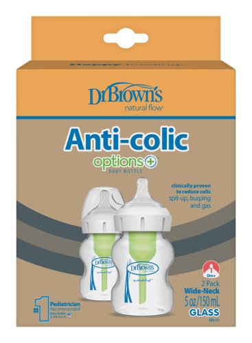 Dr. Brown’s Dojčenská Antikoliková fľaša Options+ SKLENENÁ Wide-Neck 150ml 2 ks (WB52700-P2)