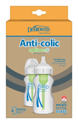 Dr. Brown’s Dojčenská Antikoliková fľaša Options+ SKLENENÁ Wide-Neck 270ml 2 ks (WB92700-P2)