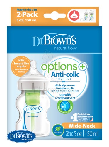Dr. Brown’s Dojčenská Antikoliková fľaša Options+ Wide-Neck 150ml 2 ks (WB52600)
