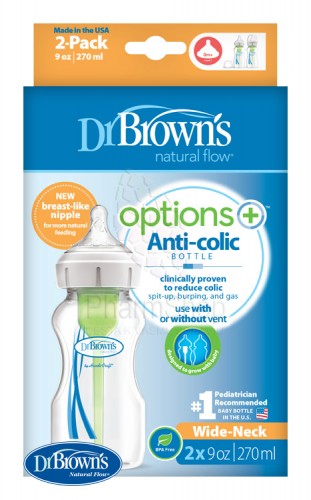Dr. Brown’s Dojčenská Antikoliková fľaša Options+ Wide-Neck 270ml 2 ks (WB92600)