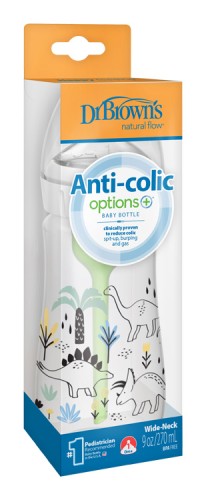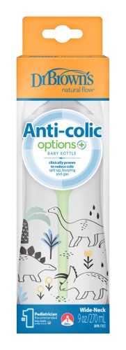 Dr. Brown’s Dojčenská fľaša Dino options+ Wide Neck 270 ml Anti-colic – 1 ks (WB91010-INTLX)