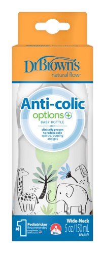 Dr. Brown’s Dojčenská fľaša Džungľa options+ Wide Neck 150 ml Anti-colic – 1 ks (WB51008-INTLX)