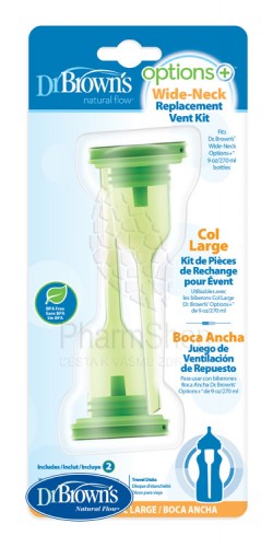 Navrhnuté výhradne pre dojčenské fľašky Dr.Brown‘s WIDE-NECK Options+ 270 ml. Prietoková vložka a rezervoár sú súčasťou každej novej fľašky tohto typu. Náhradný systém je nutné dokúpiť v prípade straty alebo poškodenia pôvodnej vložky alebo rezervoáru, aby mohol patentovaný systém vnútorného prisávania správne plniť svoju unikátnu funkciu.