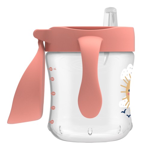 • na pitie bez vyliatia • s mäkkým náustkom • odolný voči samovoľnému vyliatiu obsahu • jednodielny, mäkký silikónový náustok • držadlá navrhnuté pre deti • hygienický kryt – keď dieťa pije zostáva otvorený, keď sa hrnček nepoužíva udržiava náustok čistý • jednoduché použitie a čistenie, možnosť umývať v umývačke riadu. Detailný popis
