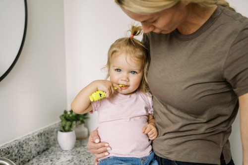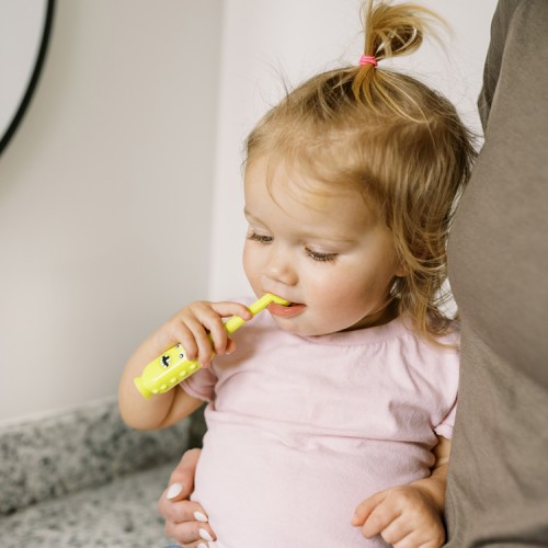 Špeciálne navrhnutá zubná kefka pre batoľatá uľahčuje každodennú starostlivosť o detské zúbky.