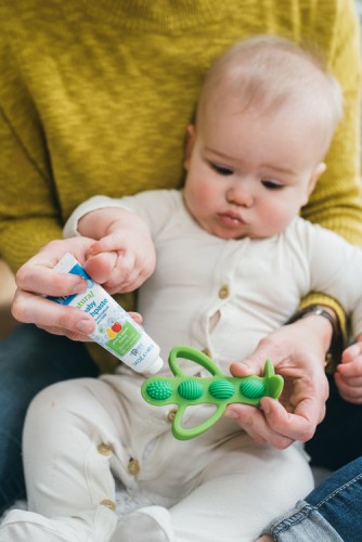 Veľmi jemná a bezpečná kefka pre boľavé ďasná a prvé zúbky. Má viacero rôznych povrchov na masáž detských boľavých ďasien.