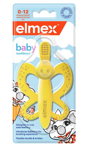 Zubná kefka elmex zoznamuje bábätká s čistením zubnou kefkou a je špeciálne navrhnutá tak, aby uľahčila prerezávanie mliečnych zúbkov. Kefka môže byť používaná aj ako hryzadlo.