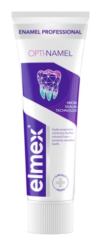 Zubná pasta Opti-namel so svojou jedinečnou technológiou Micro-Sealing poskytuje účinnejšiu ochranu pred stratou zubnej skloviny ako bežná zubná pasta. Pri čistení zubov sa jej aktívne zložky prenášajú priamo na povrch zubov, aby sa zabránilo prvým mikroskopicky malým poškodeniam. Vytvára ochrannú vrstvu, ktorá chráni sklovinu pred častými útokmi kyselín. elmex® Opti-namel zubná pasta 75ml pôsobí proti strate zubnej skloviny trojitým účinkom: 1 spevňuje zubnú sklovinu; 2. zvyšuje odolnosť zubov pred erozívnymi účinkami kyselín; 3. chráni pred stratou zubnej zmäknutej skloviny počas čistenia zubov.