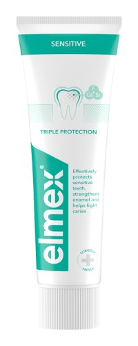 Zubná pasta Elmex Sensitive je špeciálne navrhnutá pre citlivé zuby a poskytuje účinnú ochranu po dobu 24 hodín pri pravidelnom čistení 2x denne. S technológiou NEO-AMINEX je špeciálne určená na ochranu pred zubným kazom. Mineralizuje zuby a účinne ich chráni pred vznikom zubného kazu.