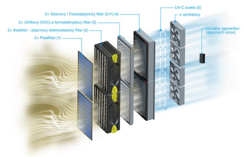 Nová, moderná, vysoko výkonná, viacstupňová, plazmová, ionizačná čistička vzduchu, na princípe produkovania ozónu, ktorý sa používa aj v medicíne, napríklad na dezinfekciu vzduchu. Detailný popis