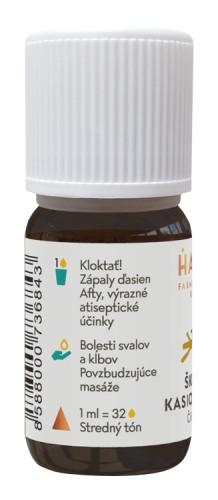 Pomáha pri zápaloch ďasien a svalových bolestiach. Vhodná na povzbudzujúce masáže (pozor, neriedená silne dráždi pokožku). Má výrazné antiseptické účinky. Detailný popis