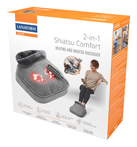 Prístroj podobajúci sa na papuče, do ktorých vaše nohy jednoducho vkĺznu, je navrhnutý na všestranné použitie. Jednoduchým spôsobom ho zmeníte na bežnú masážnu podložku, ktorú možno ľahko umiestniť na chrbát, ramená či pod stehná alebo lýtka. Tak sa 2v1 Shiatsu Comfort môže zamerať na viac častí tela a postupne uvoľňovať stuhnuté svaly.