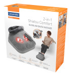 Prístroj 2v1 Shiatsu Comfort pomocou 4 masážnych hlavíc v 2 pároch obojsmerne sa otáčajúcich, s 2 stupňami intenzity masáže a 2 stupňami ohrievania prináša uvoľnenie unavených chodidiel, nôh a ďalších častí tela.