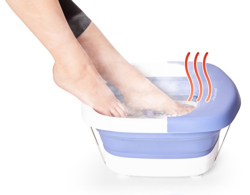 Ohrieva vodu na približne 40 stupňov Celzia, čo je ideálna teplota pre relaxačné kúpele na nohy. Veľmi praktické skladacie masážne zariadenie sa môže pochváliť inovatívnym dizajnom: po použití ju nechajte vyschnúť, rýchlo a jednoducho zložte a uložte kdekoľvek, dokonca aj pod nábytok.