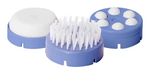 Obsahuje 3 nástroje na pedikúru a 2 masážne valčeky – odnímateľné