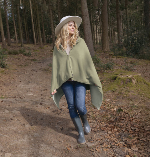 Vďaka vonkajšej bavlnenej tkanine a ultrajemnej flísovej podšívky, toto pončo dokonale spája estetiku a pohodlie. Jeho šalviovo-zelená farba je jemná, moderná a tento rok patrí medzi najväčšie trendy. Toto pončo môžete nosiť ako módny doplnok a zároveň vám poskytne pocit pohodlia, a to ako v interiéri, tak aj vonku.