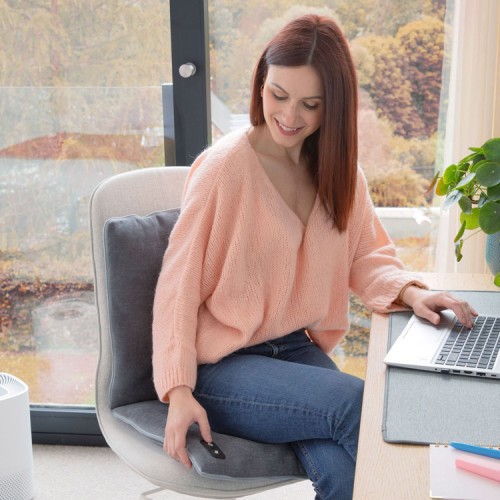 Okrem toho, že vyhrievací vankúš funguje ako vyhrievacia podložka s moderným dizajnom, slúži aj ako podložka na stoličku. Vďaka dvom vyhrievacím zónam a dvom intenzitám vyhrievania vám poskytne jedinečné pohodlie, či už sedíte v kresle alebo v kancelárskej stoličke.