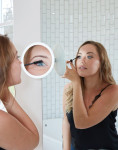 Vďaka 5-násobne zväčšujúcej zrkadlovej ploche, osvetleniu s nastaviteľnou intenzitou osvetlenia a otočnou priľnavou sacou podložkou bude mať zrkadlo 2-v-1 osobitné miesto vo vašej kúpeľni. Budete sa môcť rozhodnúť, či ho priľnavou podložkou upevníte na svoje veľké nezväčšujúce zrkadlo v kúpeľni či nad toaletným stolíkom. Otočná sacia podložka umožňuje nájsť perfektný uhol nastavenia, aby ste dokonale videli svoj make-up.