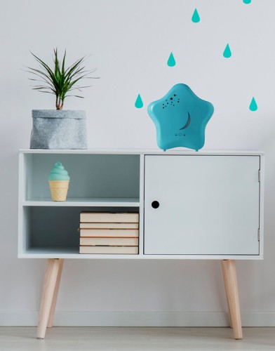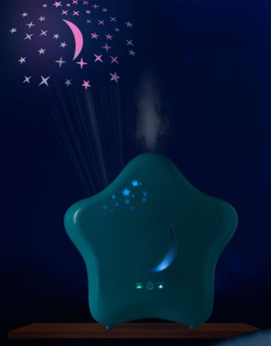 Moony je čarovná hviezda, ktorá pred spaním premení detskú izbu na zdravé a pokojné prostredie: zvlhčuje vzduch v miestnosti a rozptyľuje esenciálne oleje pomocou ultrazvukovej technológie, pôsobí ako upokojujúce nočné svetlo s jemným bielym svetlom a zaujme dieťa projekciou mesiaca a farebných hviezdičiek na strop.