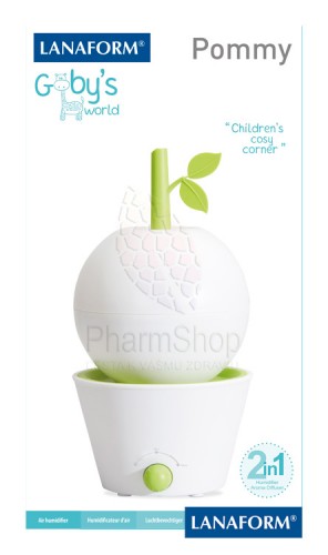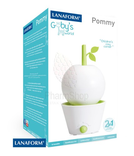 Zvlhčovač vďaka nepretržitej 10 hodinovej prevádzke zaistí dieťaťu pokojnú noc. Príjemný dizajn a modré svetlo vaše dieťa ukľudní. Pommy má tichý chod a nastaviteľnú intenzitu tvorby hmly. Ventilačný systém rozptyľuje vodu vo forme studené hmly (aerosolu) a tým poskytuje požadovanú vlhkosť. Vo výstupe aerosolu sa nachádza penová vložka pre biologické esenciálne oleje. S výrobkom sú dodávané 3 náhradné penové vložky.