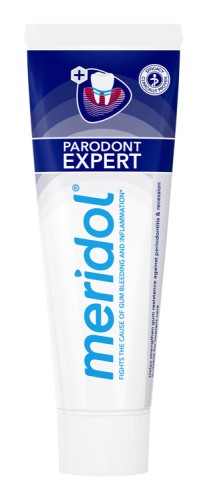 Zubná pasta meridol® Parodont Expert bojuje proti príčine krvácania a ďalších problémov s ďasnami* a pomáha zvyšovať odolnosť ďasien proti ústupu ďasien a ďalším problémom s ďasnami.