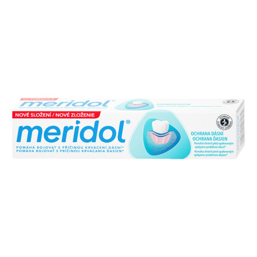 Zubná pasta pôsobí proti zápalu ďasien a podporuje ich prirodzenú regeneráciu. Obsahuje jedinečnú patentovanú kombináciu aktívnych zložiek aminfluoridu (olaflur) a zinku, ktoré inaktivujú neodstránené zvyšky bakteriálneho povlaku a zabraňujú usádzaniu zubného povlaku na okrajoch ďasien. meridol® zubná pasta pôsobí ako balzam na Vaše poškodené ďasná. Navyše vysoko účinný amínfluorid chráni pred zubným kazom.