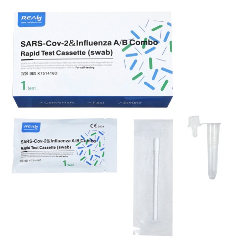 Antigénové testy určené na domáce samotestovanie s rýchlym výsledkom, výter z kraja nosa, deteguje SARS-CoV-2 a aj chrípku typu A a B. Detailný popis