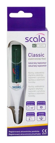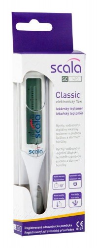 Rýchly, vodeodolný digitálny lekársky teplomer s pružnou špickou a alarmom horúčky. Dizajn ortuťového teplomera.